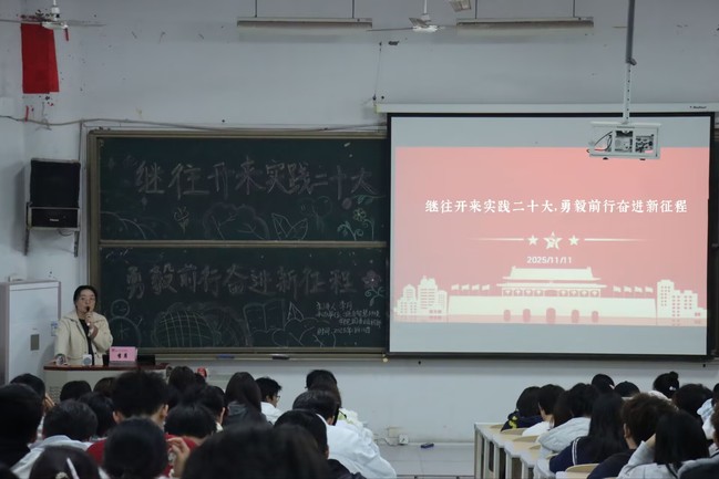 为深入学习贯彻党的二十大精神,激励青年以“继往开来、勇毅前行”的青春实践作答时代之问,11月11日,绿色智慧环境学院在格律楼04室举办“继往开来践行二十大,勇毅前行奋进新征程”主题讲座。此次讲座由李月老师主讲,2025级全体学生参与。