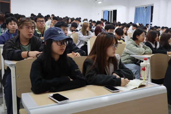 讲座中,李月老师以三封信破题,带领同学们共读党的二十大报告,同时鼓励同学们对照国家发展需求,制定自己的《绿色四年计划》,不断提升专业能力与综合素养,抓住机遇,挺膺担当。