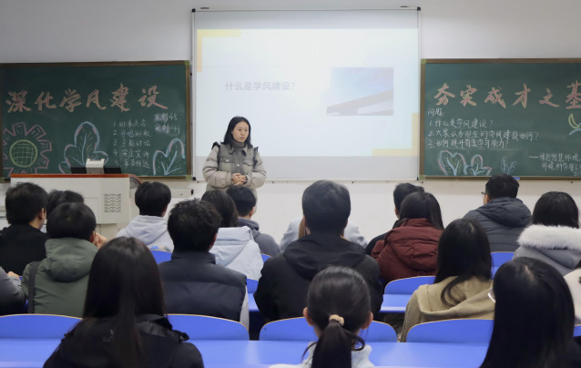 为进一步拧紧学习纪律发条,营造勤学笃行的班级氛围。11月30日,绿色智慧环境学院于401、402、404、405教室召开学风建设主题班会,由2025级辅导员夏凡婷老师主讲,2025级全体学生参与。