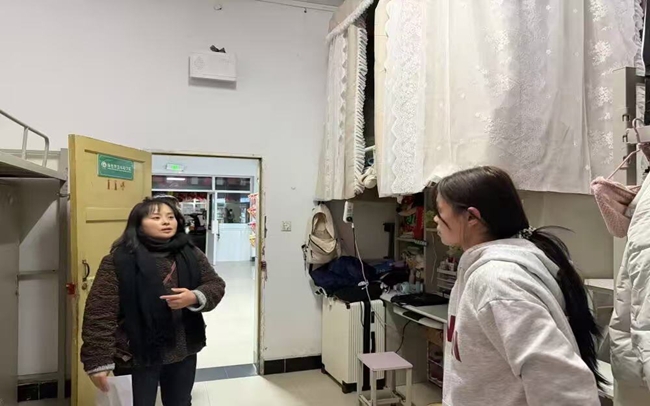 近日,学院领导、辅导员、班导师深入南苑、北苑宿舍,与同学们亲切交流,重点排查用电、消防等安全隐患,对宿舍卫生、物品摆放提出细致要求,关心学生期末复习状态与生活需求,叮嘱大家增强安全意识,遵守管理规定,共建良好学习生活环境。