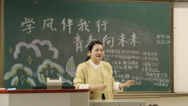 为营造浓厚学习氛围,强化学风建设意识,引导学生端正学习态度、养成良好习惯,4月6日,绿色智慧环境学院在崇礼楼教室组织开展学风建设主题团会。辅导员夏凡婷、李月、杨用艳担任主讲,全体学生参加活动。