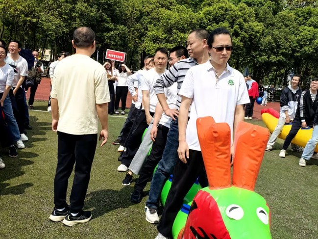 在田径赛场上,师生们奋勇争先,加油声与欢呼声此起彼伏,现场活力满溢、氛围热烈,充分展现师生们昂扬向上、团结奋进的精神风貌。本次趣味运动会通过趣味项目增进教师之间的默契与友谊,点燃运动热情,助力教师强健体魄、释放工作压力。